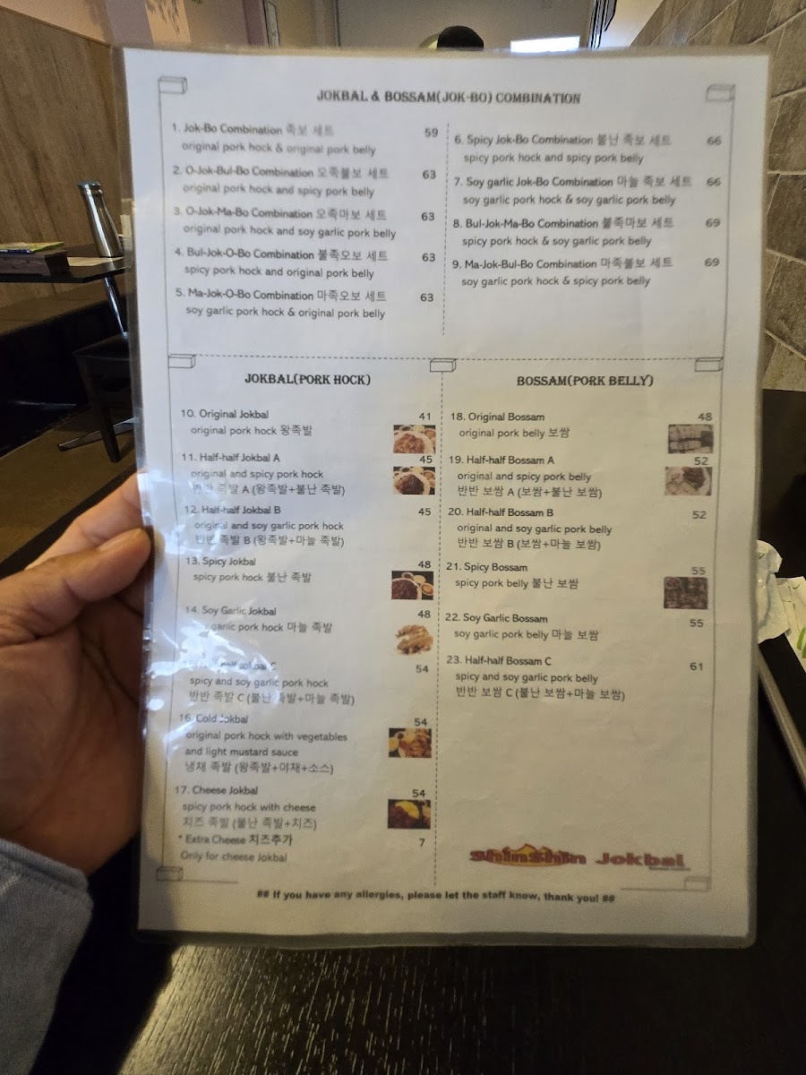For those who love Korean-style pork dishes, the Jokbal and Bossam offerings are a must-try. Highlights include the Oh-Jok-Bul-Bo Combination, Spicy Jok-Bo Combination, and Jok-Bo Combination, all showcasing the rich, savory flavors of braised pork knuckle. If you want a bit of everything, the Oh-Jok-Ma-Bo Combination and Ma-Jok-Bul-Bo Combination provide a mix of tastes that will leave you satisfied. For the ultimate indulgence, the Half-Half Jokbal A and Half-Half Jokbal C are popular choices, combining the best of both worlds. If you're in the mood for something spicier, the Spicy Jokbal is sure to excite your taste buds.